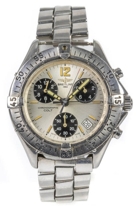 Case: Stainless Steel Case with Stainless Steel Uni-Directional Bezel, Silver Dial with Date Aperture and Chronograph Function