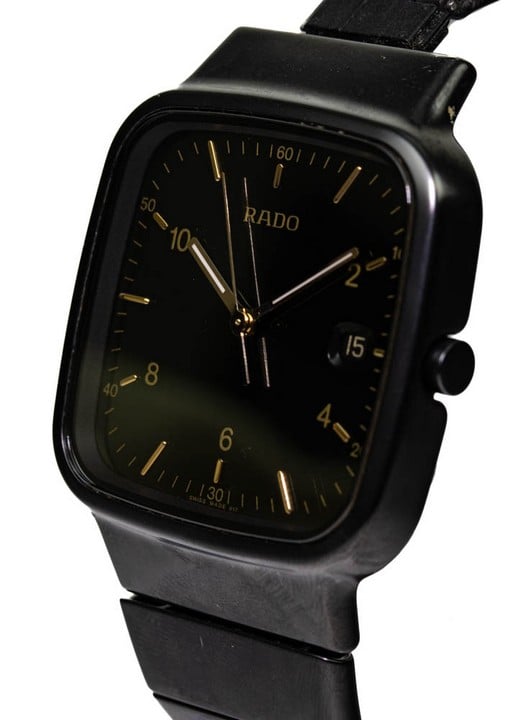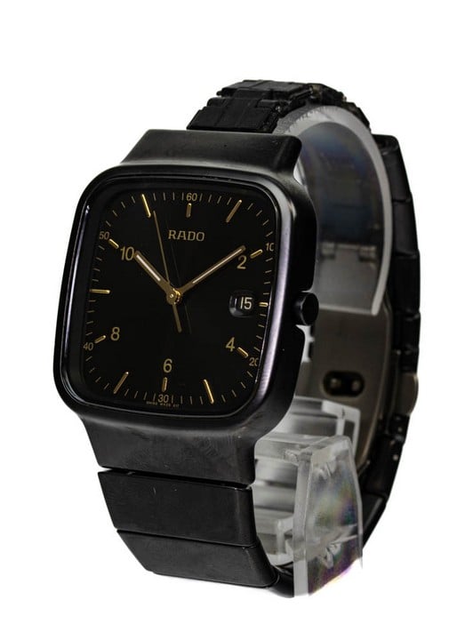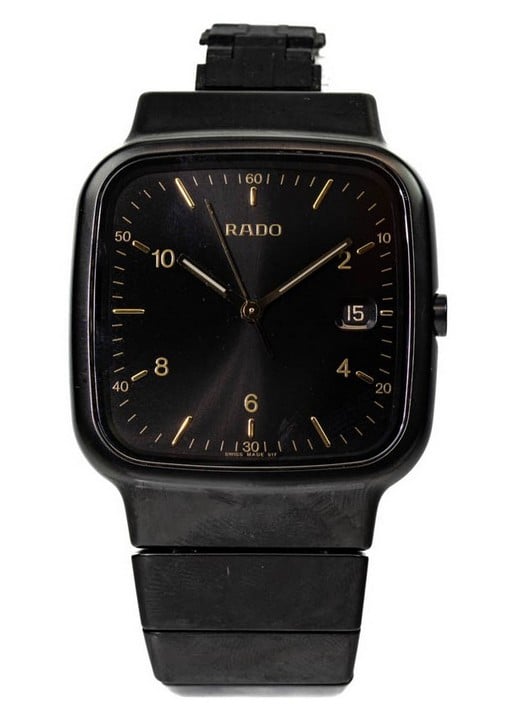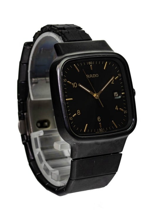 - Rado Diastar Quartz Watch. Model: R5.5 Black Dial with Date Aperture. Black High Tech Ceramic Case and Bracelet with Stainless Steel Clasp. Brief Condition Report: Damage to Links, (Not Currently Run